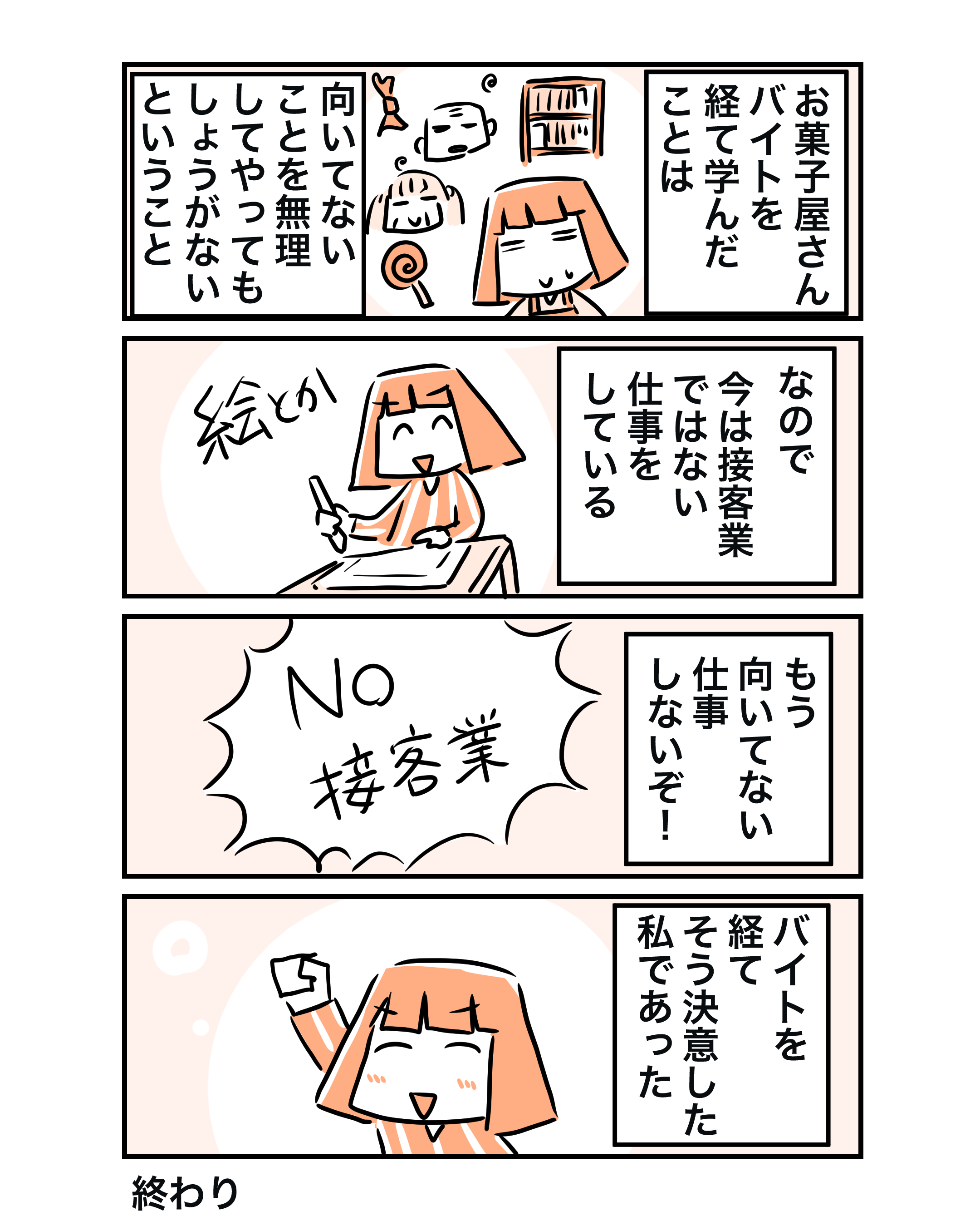 2023/12/19 【5】殺伐としたお菓子屋さんでバイトしていた話 ブログネタ:【公式】アルバイトにまつわる経験談 に参加中! 📚はじめから読む📚 📚前回のお話📚 これにてお菓子屋さんバイトシリーズ完結になります!閲覧ありがとうございました!今後もエッセイ漫画の連載を火・土の週2更新で続けていきたいと思いますので引き続きどうぞよろしくお願いいたします!👇おすすめ日常漫画👇 👇その他おすすめ漫画👇👇ブログランキング参加中!👇👇読者登録で更新をお知らせ👇👇SNSやってます!よければフォローいただけると嬉しいです👇👇無料配信中!👇 < 前の記事次の記事 > コメント コメントフォーム 名前 コメント 記事の評価 リセット リセット 顔 星 情報を記憶 コメントを投稿する